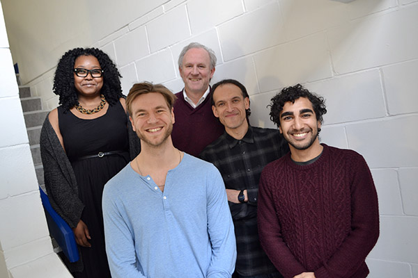 Thin Time – Luyanda Unati Lewis-Nyawo (Mrs Polly), Wilf Scolding (Crookshap), Peter Davison (The Doctor), Nicholas Khan (Stubbs) and Zaqi Ismail (Hobshaw) 2
