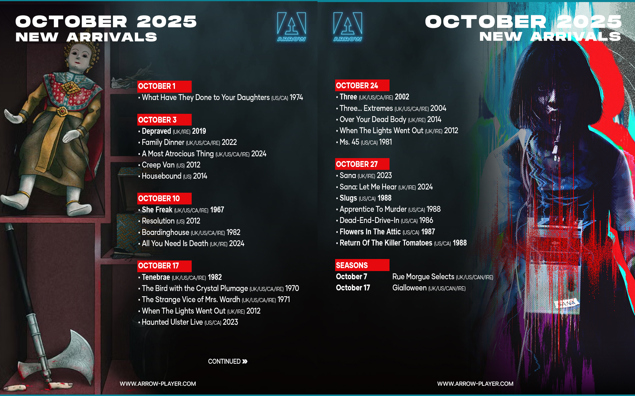 ARROW – October 2025 Line-up listing graphic.